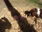 It started out innocently enough. We went out to go swinging. And then, as usual, one thing led to another and I picked up the leaf rake that was so insouciantly leaning against the house (if a rake can be insouciant…but as this is my literary world for the moment, do indulge me…). And before I knew it I’d raked for a good 30 minutes and had 3 GINORMOUS piles of aspen leaves for the munchkin and her dog to play in.