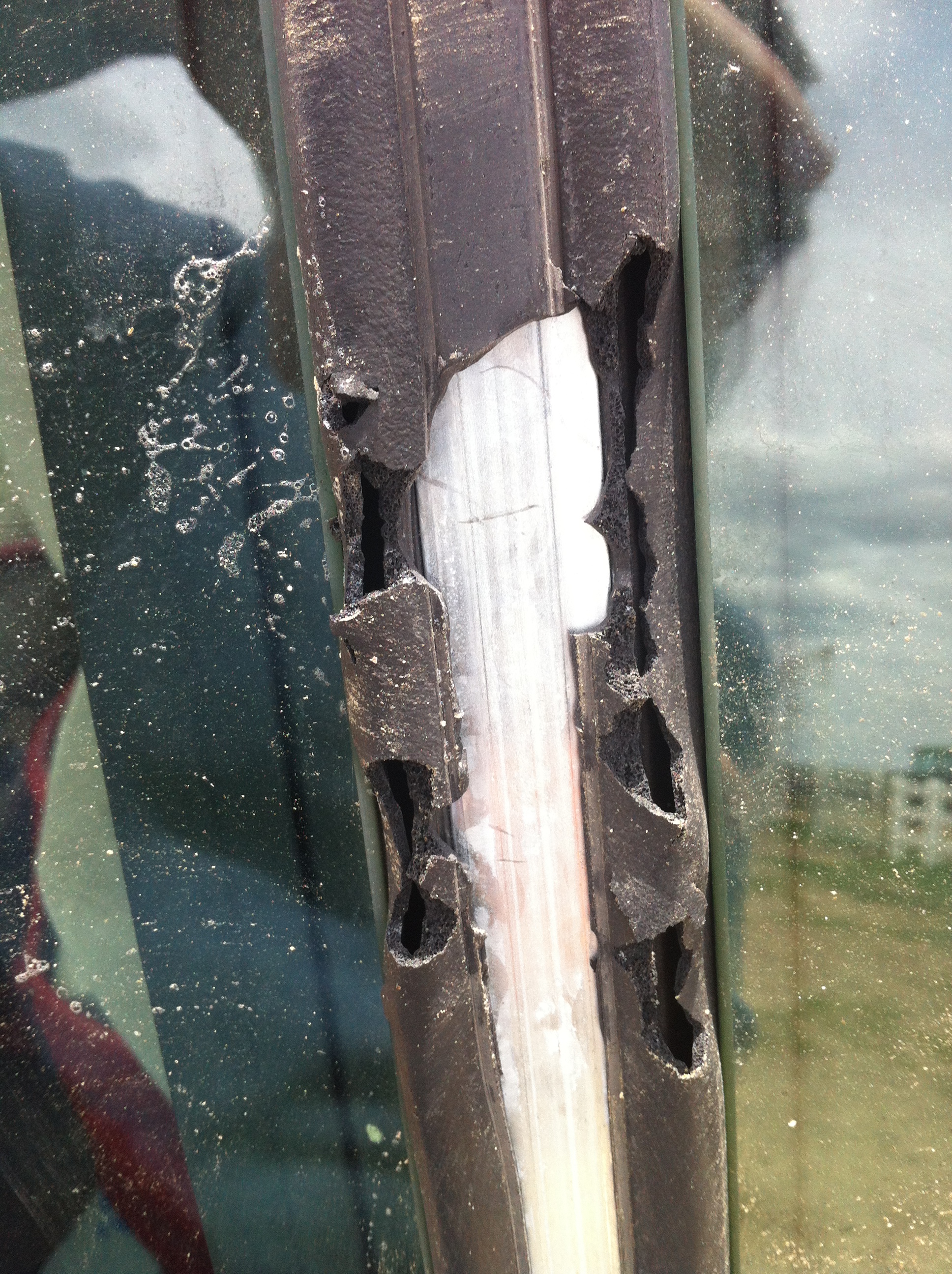 He was first sighted this morning about 8 am, by my visiting sister. Whose dog Quito tried to tell this impertinent visitor a thing or two. However, the young Ursus americanus felt the need to tell my sister a thing or two…and this is what he did to her car.