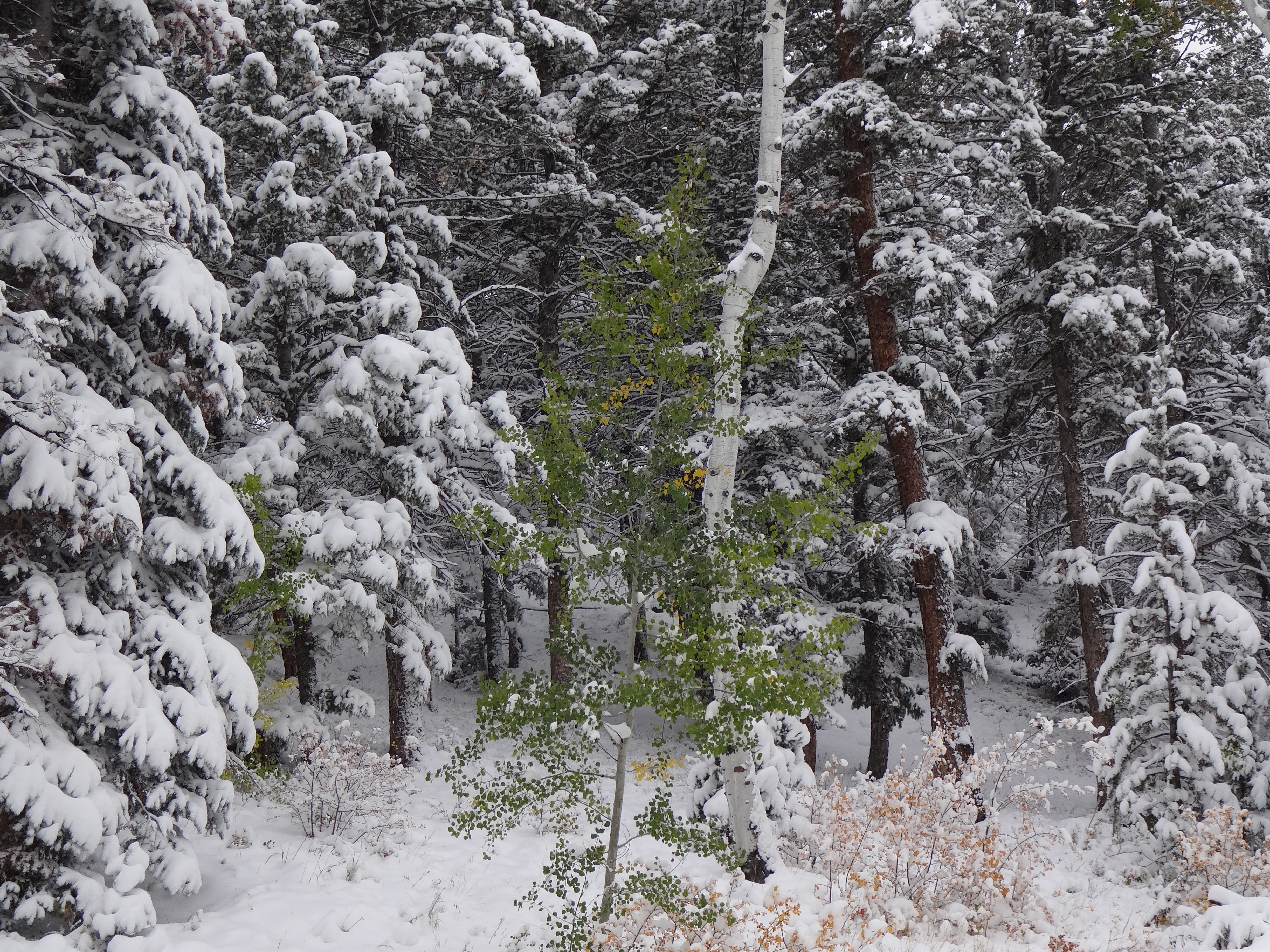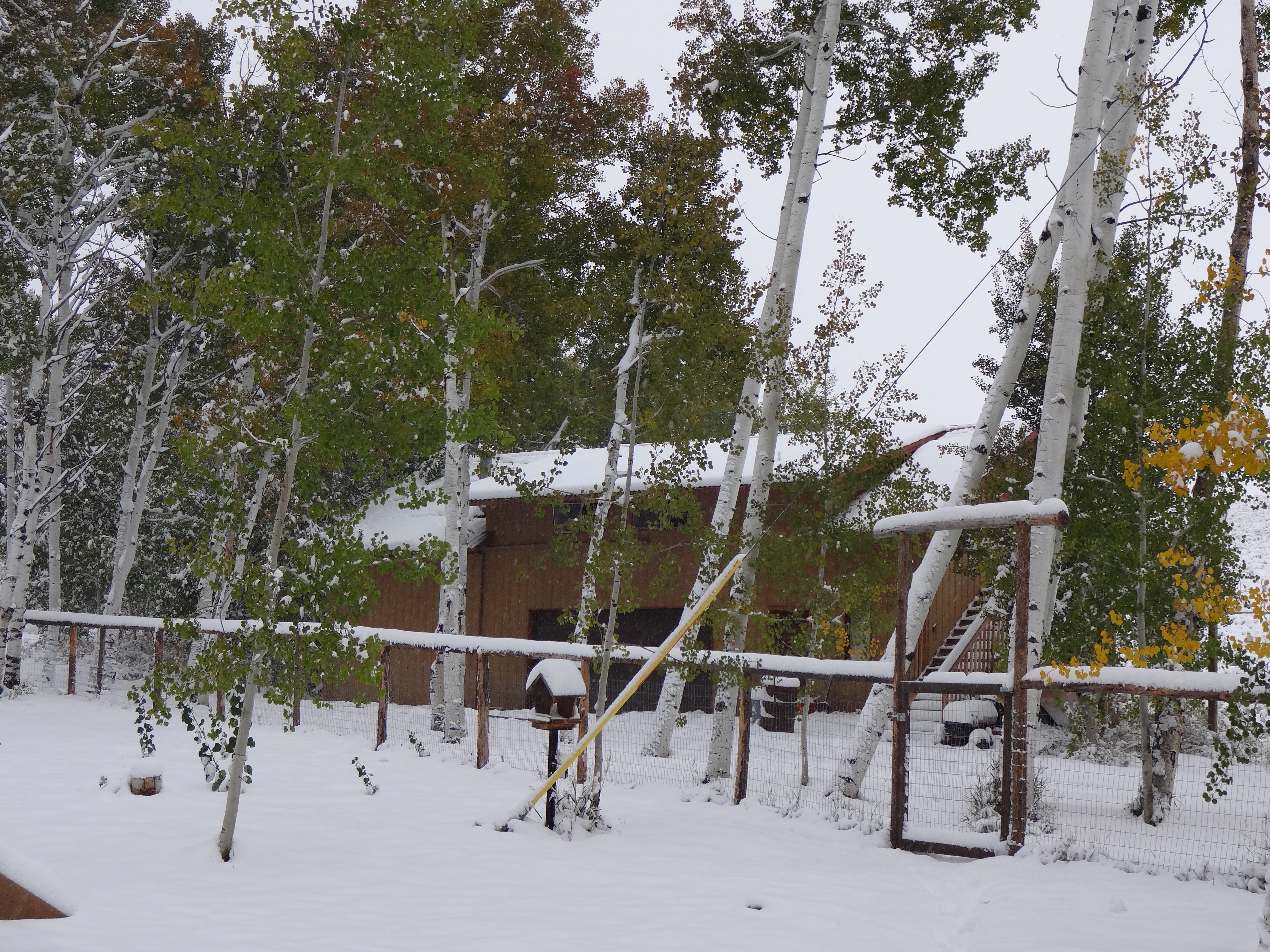 The leaves haven’t totally turned yet on the aspens. In fact, most are still green. This will definitely put a damper on the fall colors here. That’s sort of a bummer, but again…such is life.