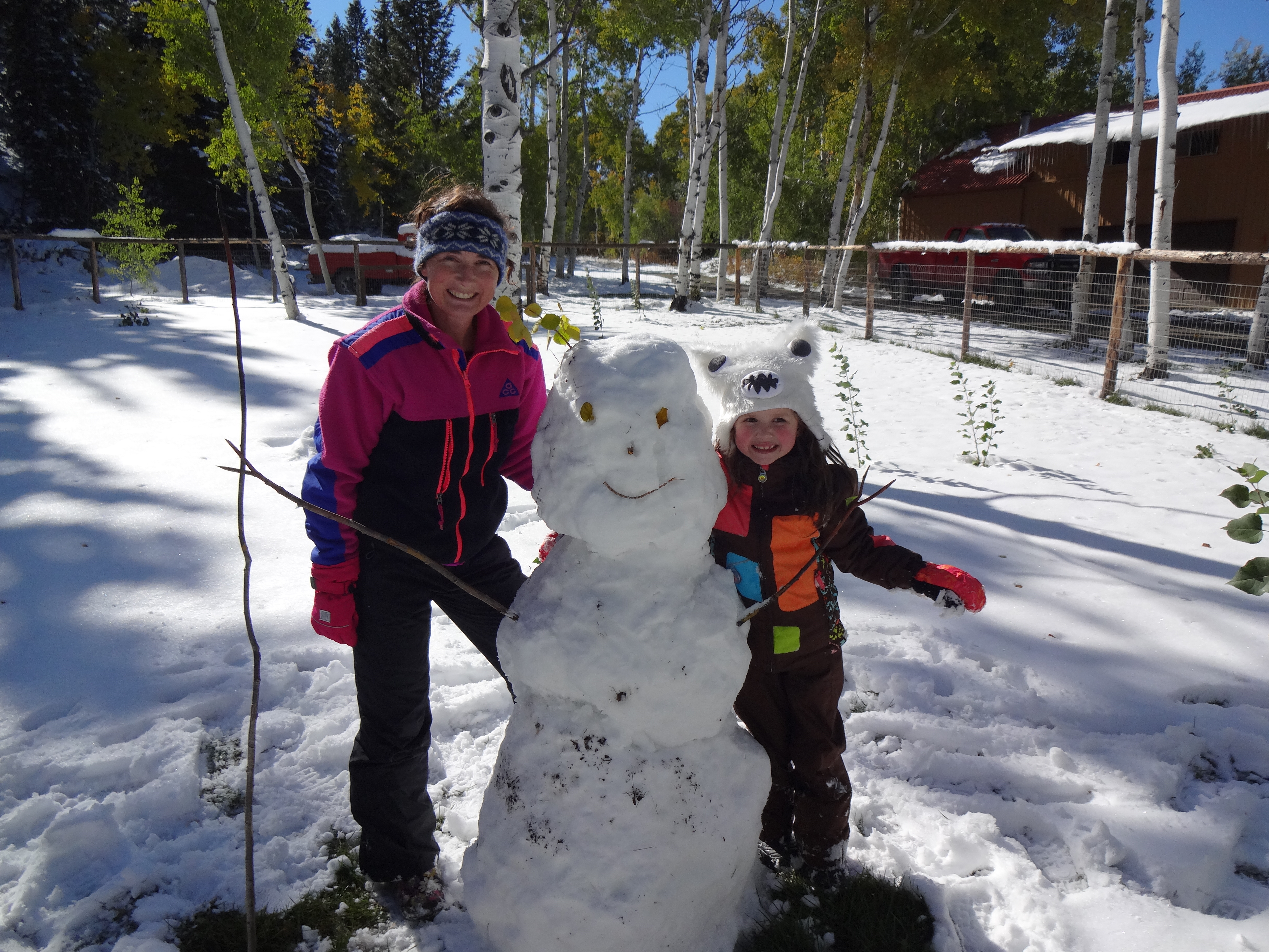 There was snow shoveling and ‘snowgirl’ building (note the aspen leaf hair decoration) followed by a snowball fight in which daddy got his clock cleaned by the girls!  Yea girl power!!!