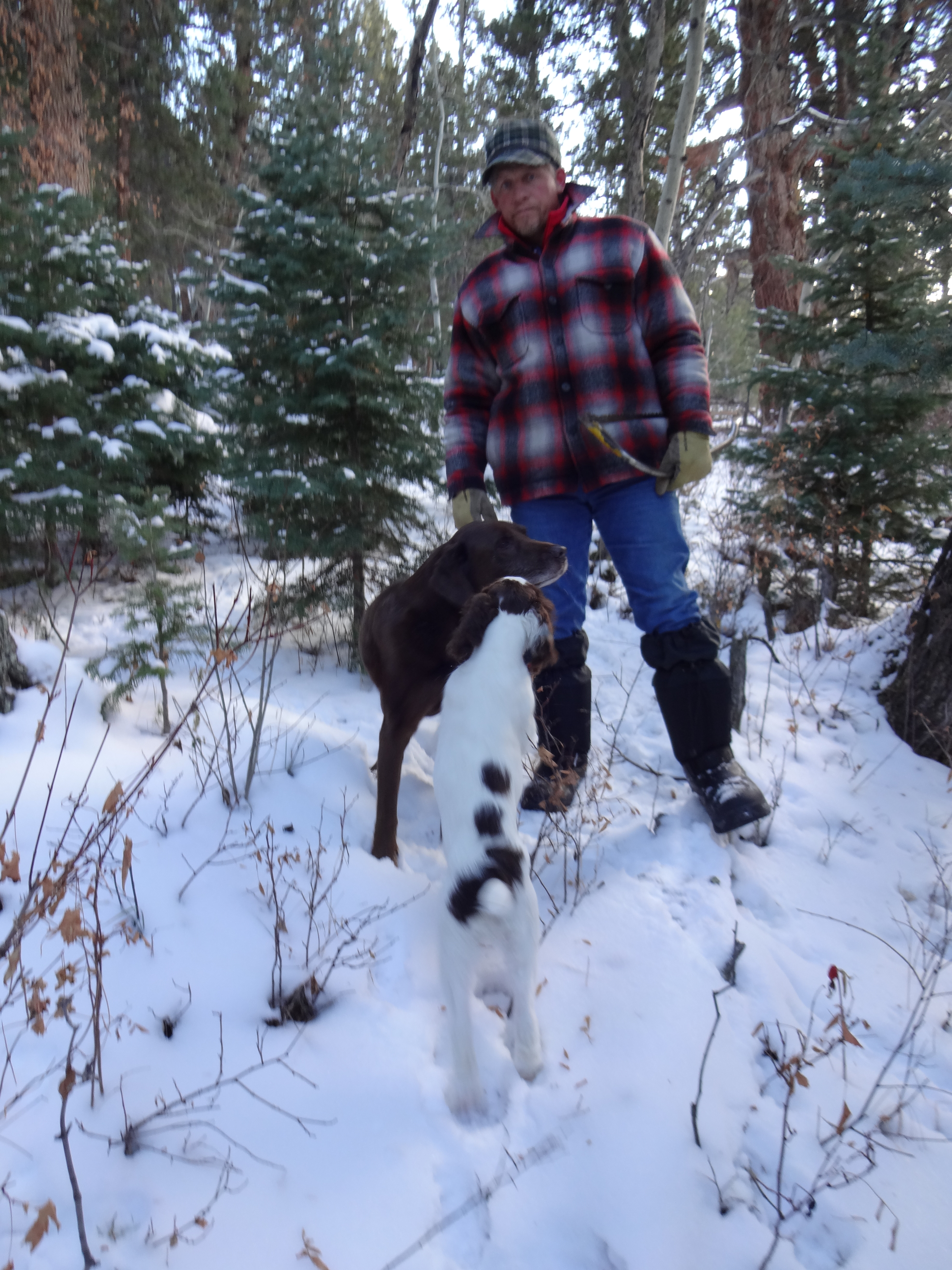 The lumberjack and his dogs.