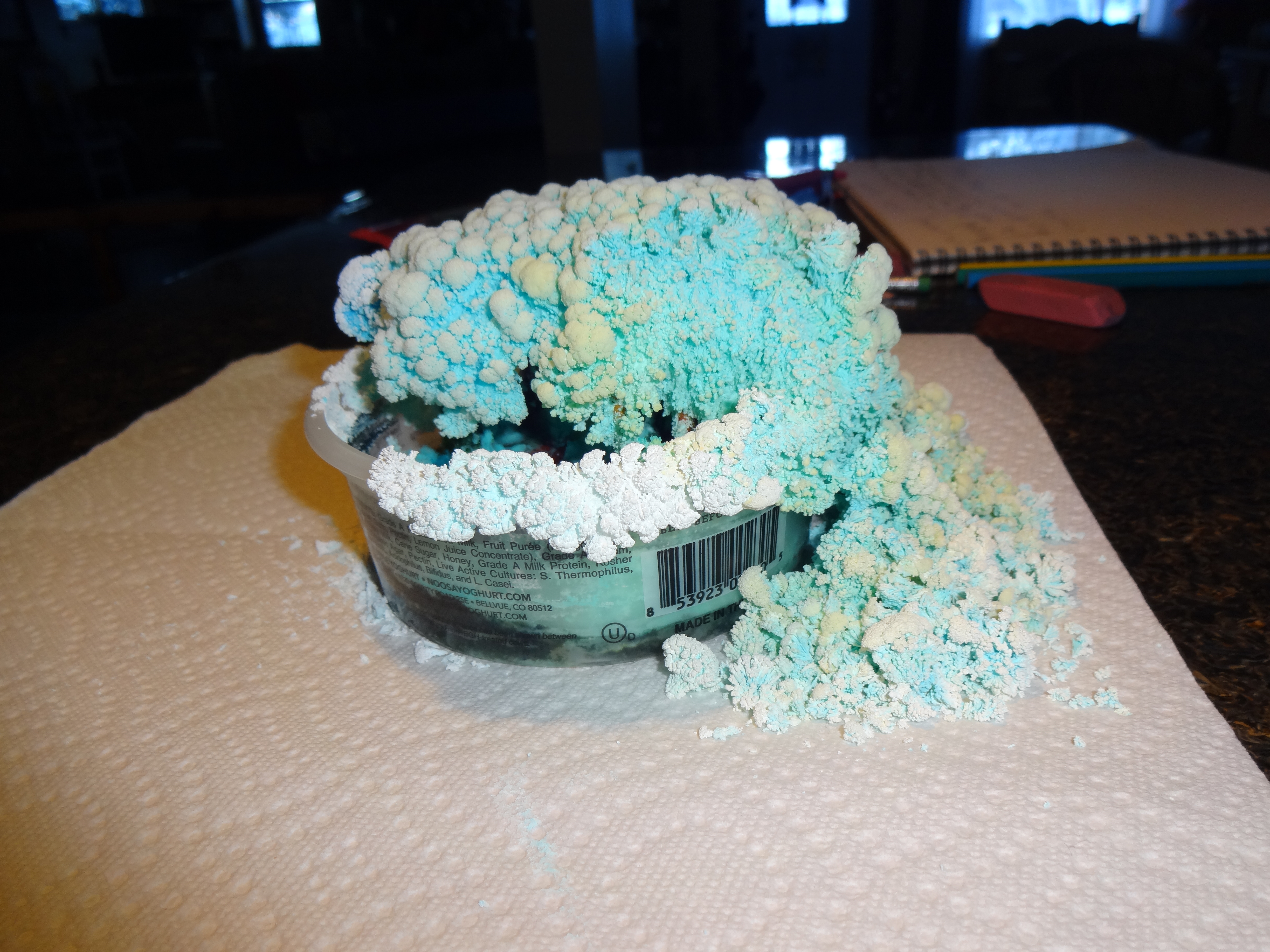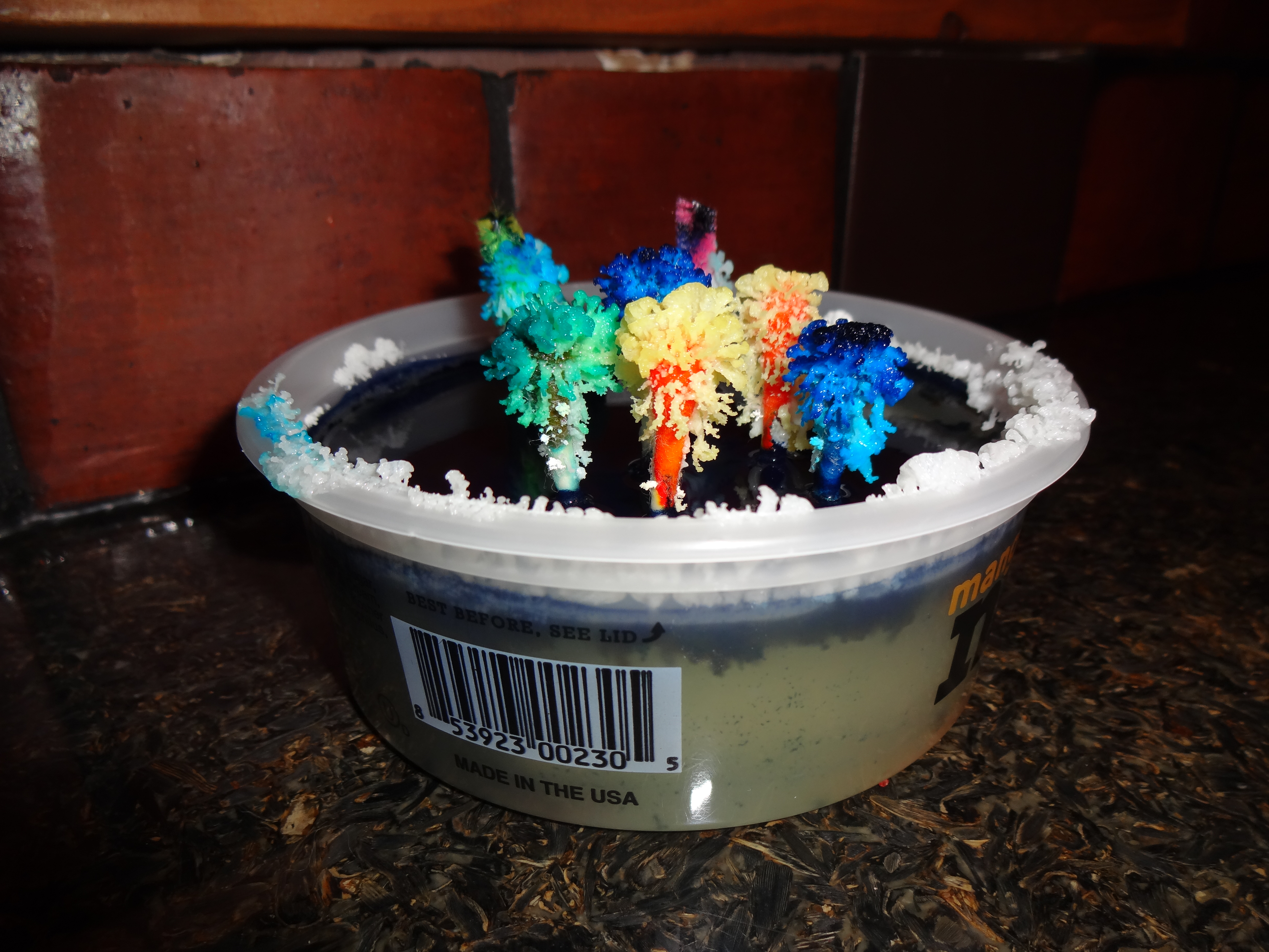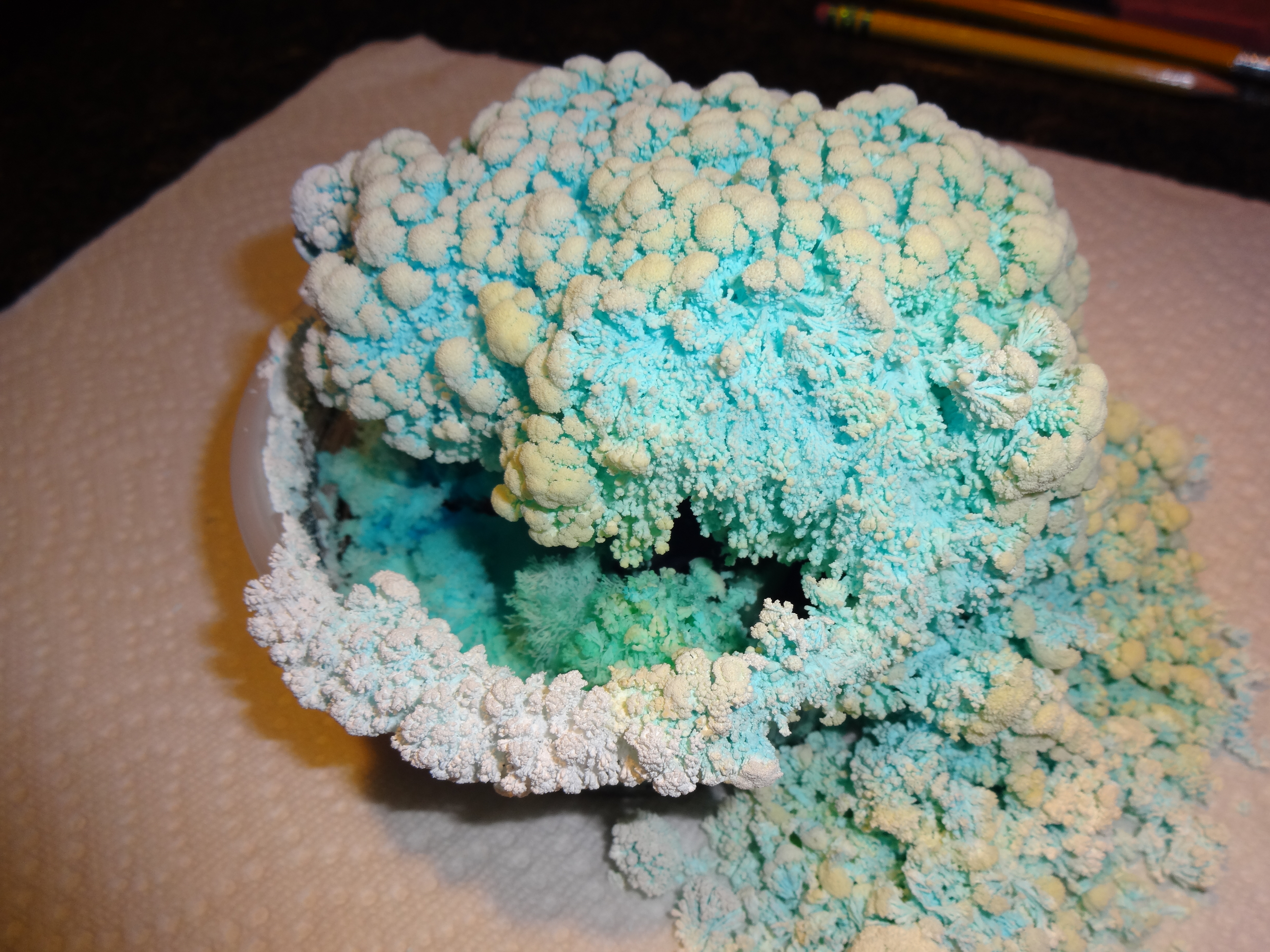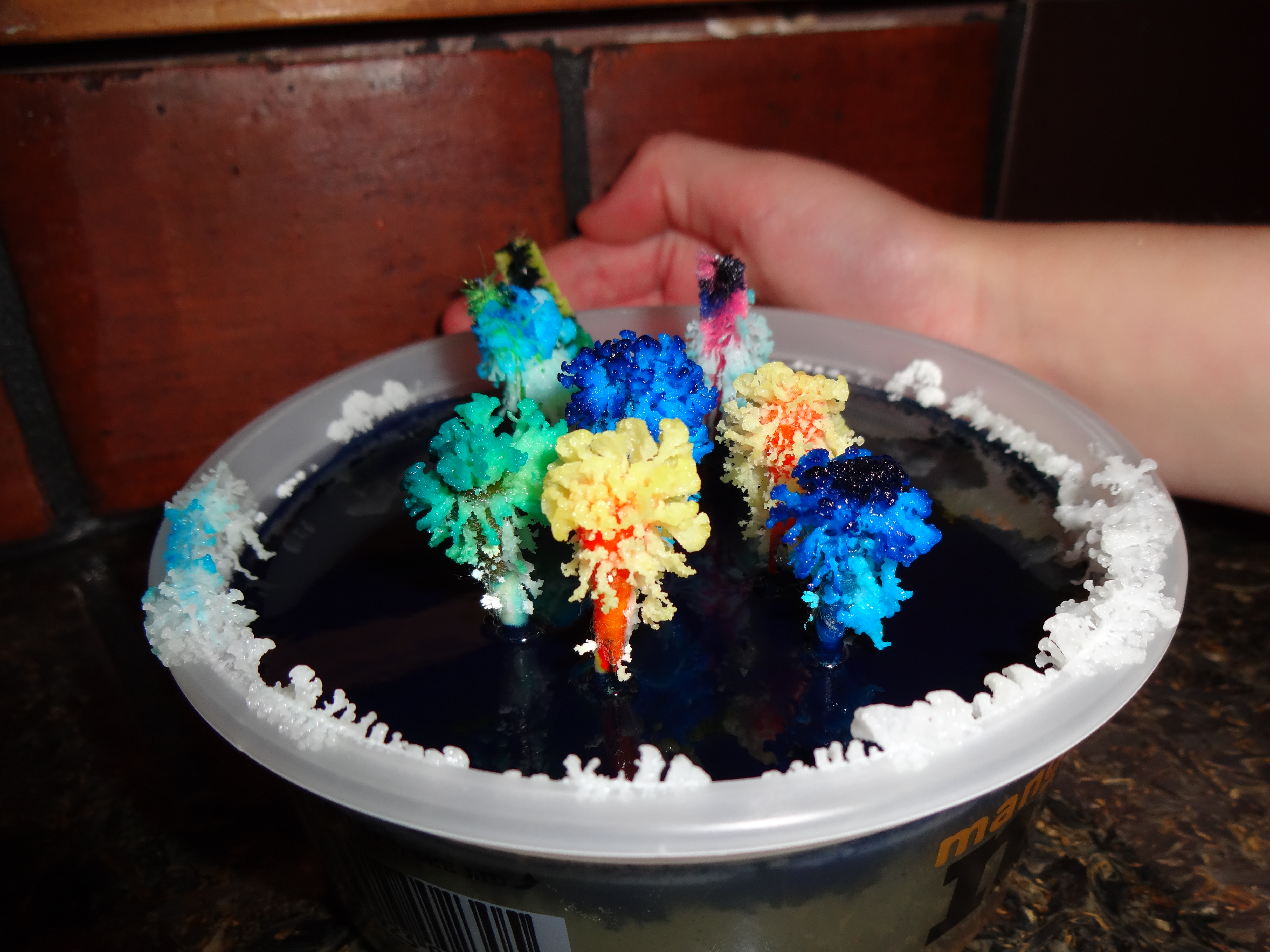 There were some other ‘current events’ that begged my attention, but as the swirling in the skull has slowed to a manageable intensity, I find I must turn to the next order of business. School. We’re late already (of course, we’re always late getting started) and we need to bake a bazillion Christmas cookies this afternoon. So…on to the land of Ancient Rome, spelling, vocabulary (Latin word roots), the 34th president and maybe exploding some more crystals in the chemistry lab a.k.a. my kitchen. (See pictures below of the latest experiment. I recommend you do try this at home–super fun.)