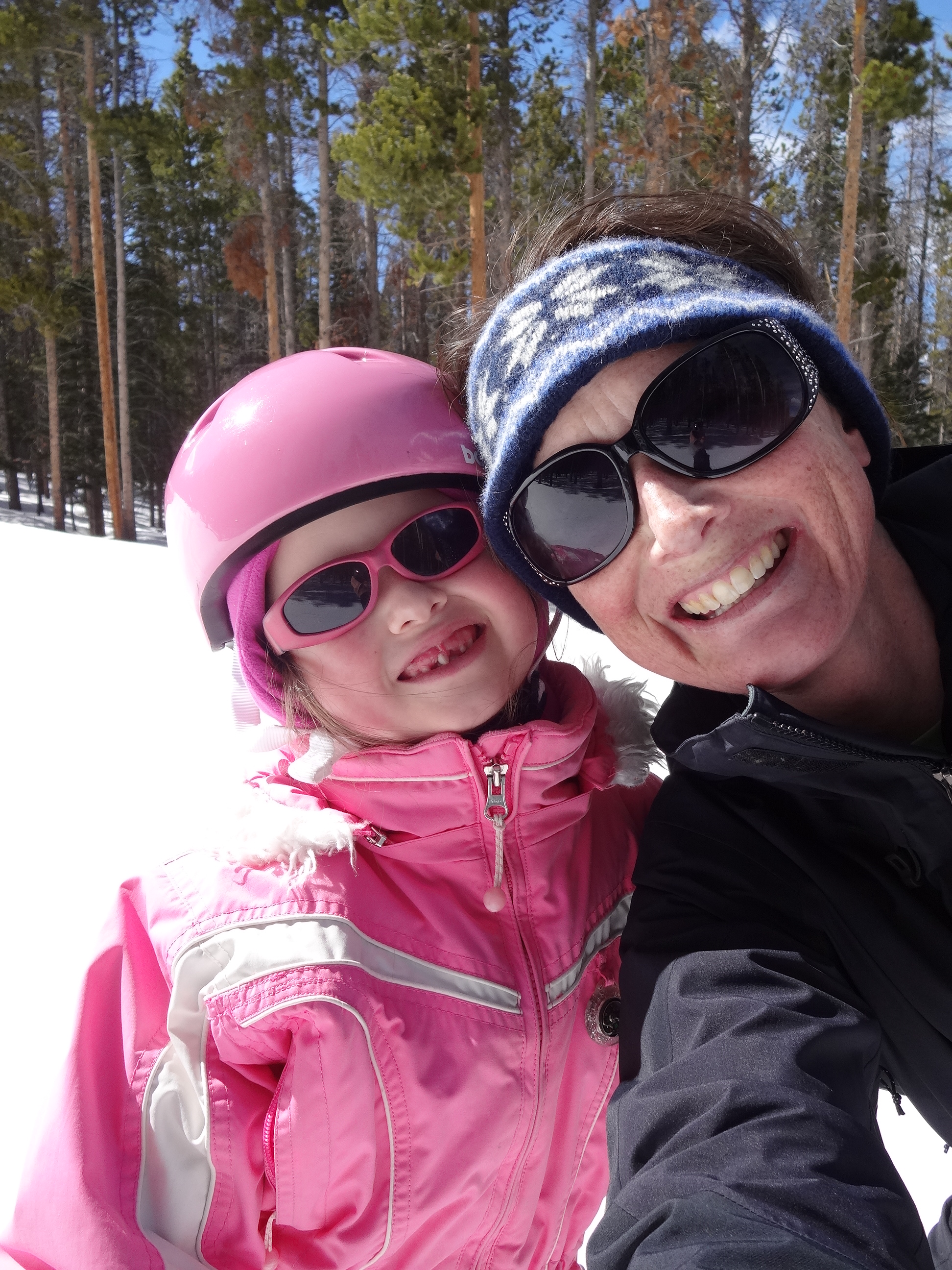 (Pictures from March 2013 skiing. Note no helmet on the momster.)