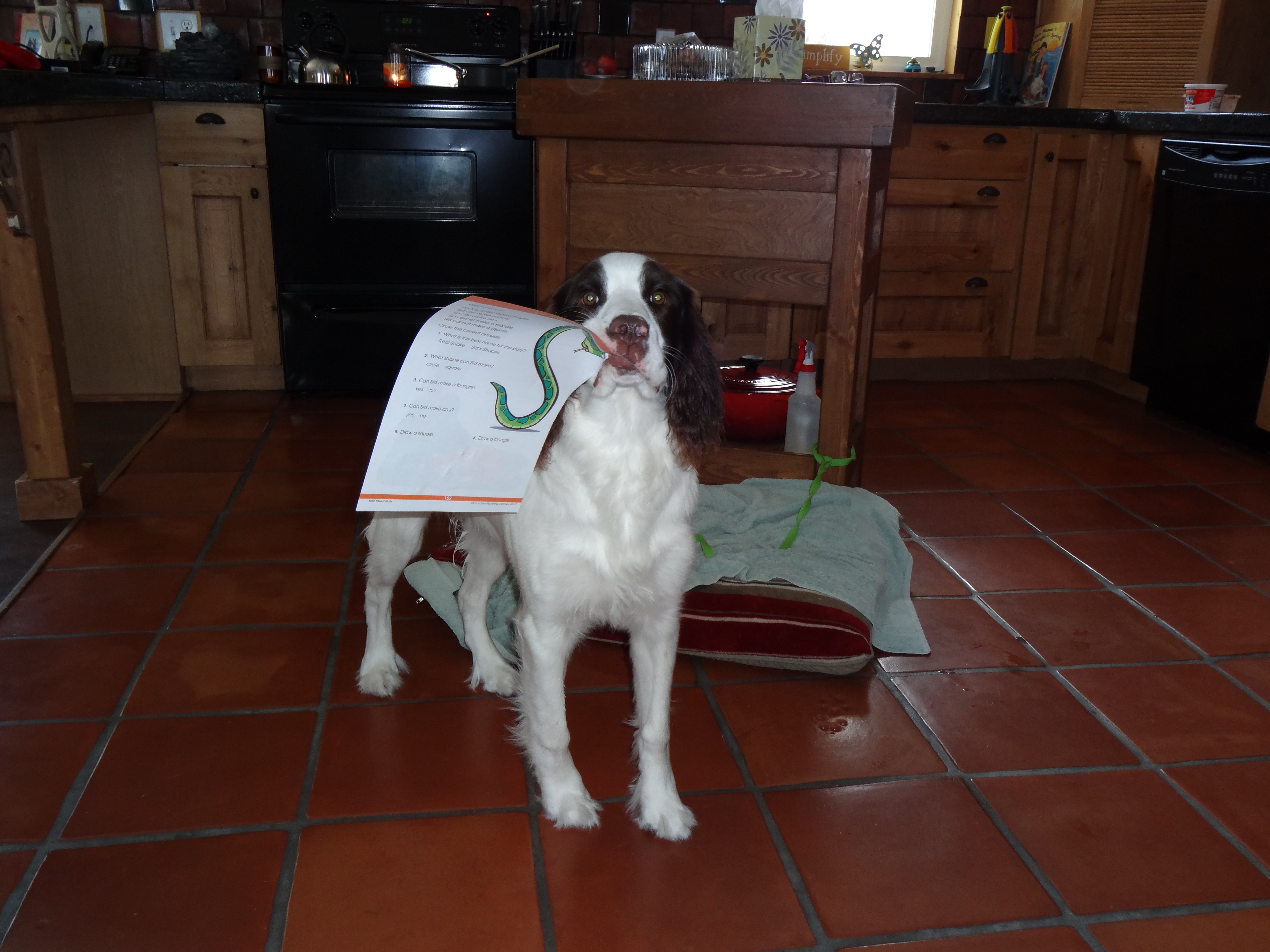 I just don’t get this little guy. He is definitely at the angst-ridden, gangly-awkward teenage “years” but sometimes even that isn’t adequate to explain his behavior. Last week, he munched on the Spelling and Reading Comprehension books as they sat in the travel bag. Granted, they were at a perfect level to take a swipe at. But seriously. I just don’t get the fascination. Unless…unless…he is desperately trying to improve his SAT scores. Now that makes me happy, and I’ll give him a pass.