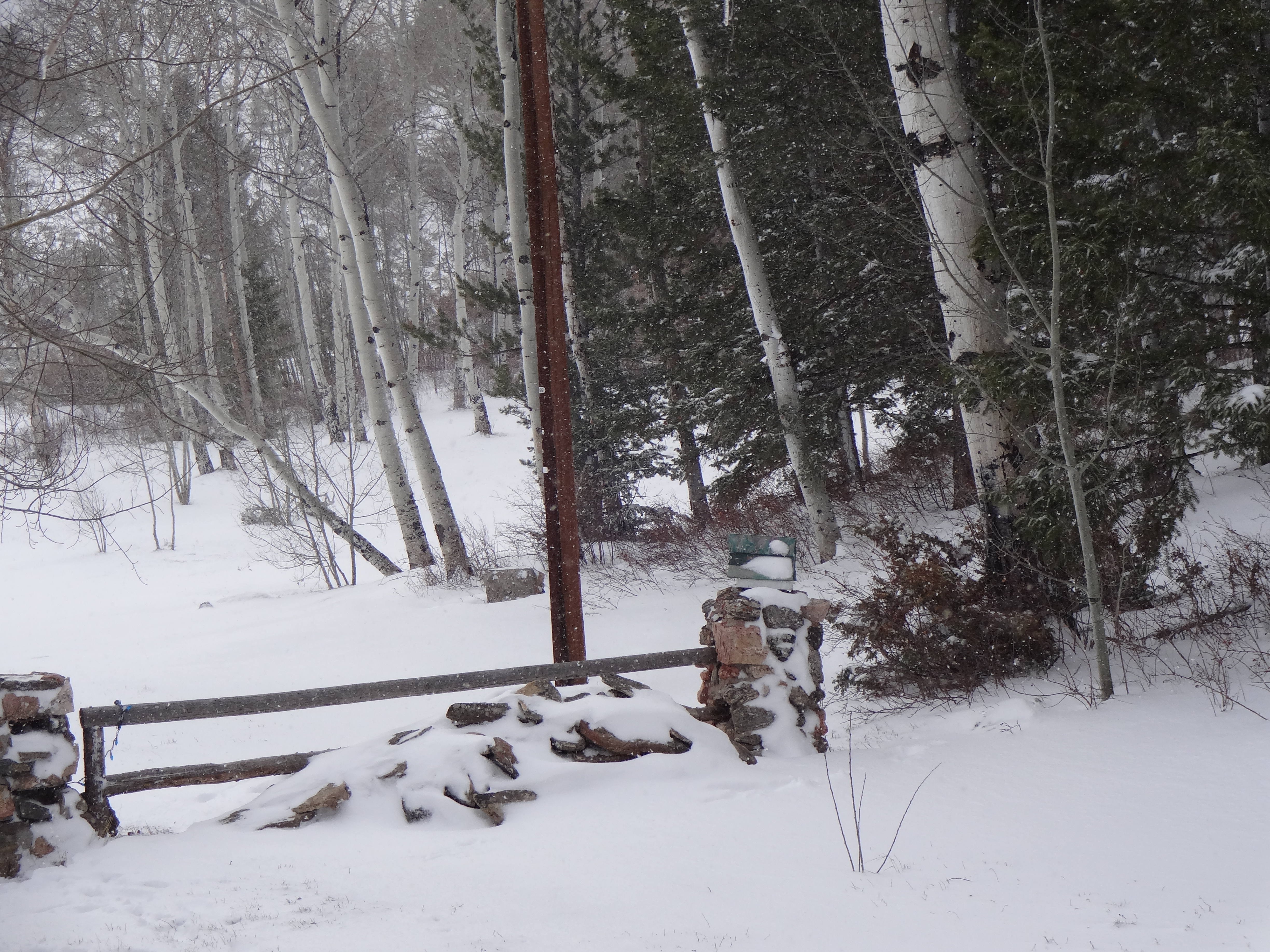 The really sad thing?  Two days ago when it started I watched a pair of robins (resident robins who we think have nested here several years now), one sitting on the fence with all puffed out feathers just peering through the snowflakes.  If I could have figured out how to dig them up some worms, I would have.  And I don’t do worms.  Poor things.  Probably thought they were in some sort of time warp or something.  I imagine the conversation went something like this: