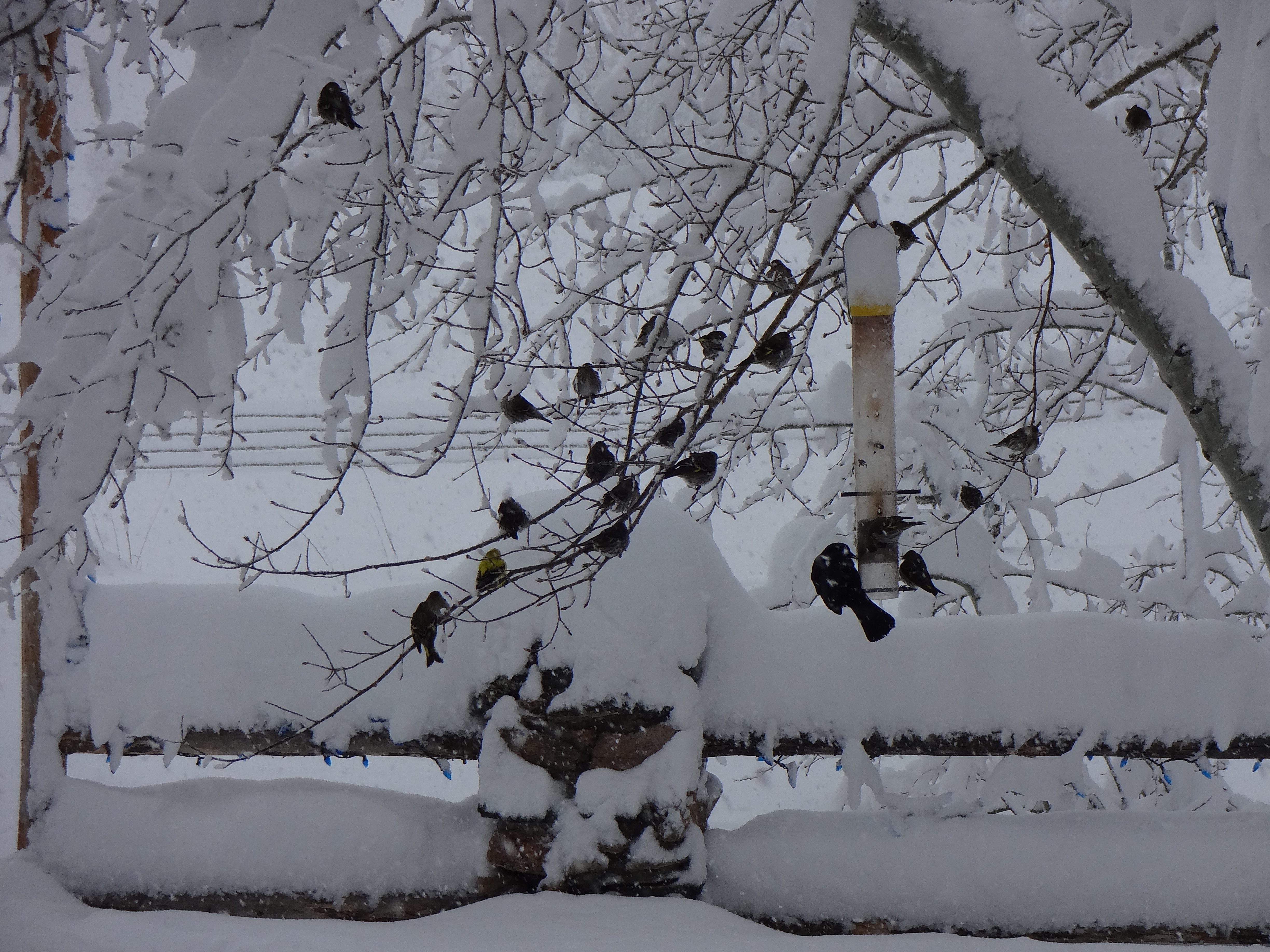 We’ve already lost one bird. A little pine siskin. He hit the window and I found him on the snow under the finch feeder out front. Still breathing, bleeding eye. I brought him in and tried to warm him up, but it was too late. Heartbreaking. Nature, I know. But no less sad when it happens.