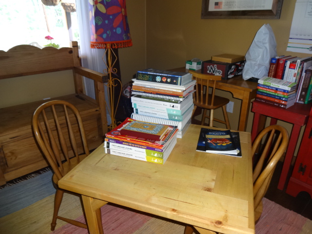 Anyway, off to school. Our stack of materials is daunting, but we’re starting with a positive attitude this year…one day at a time!