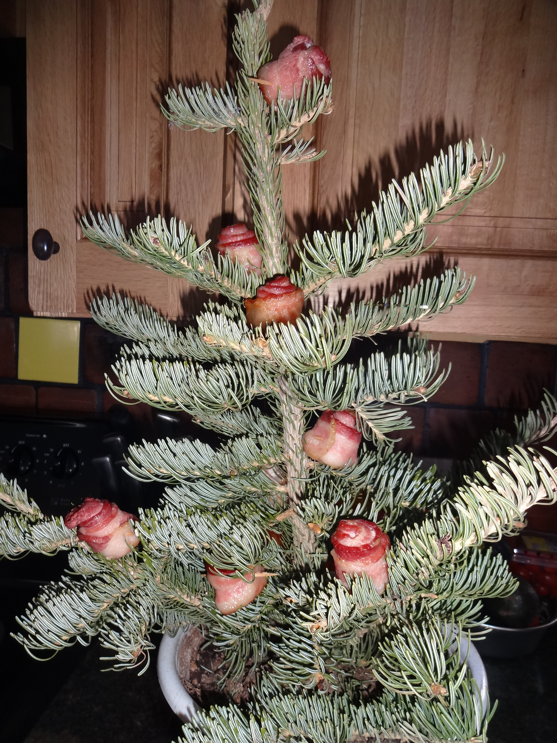 Ahhhh, it’s coming to me now. His very own Baconcone tree! (Like pinecones, but not. Get it??) I thought it was priceless. It didn’t go over very well, and needed lots of ‘splaining. So it lost a little bit on the translation. But a girl can try, right?