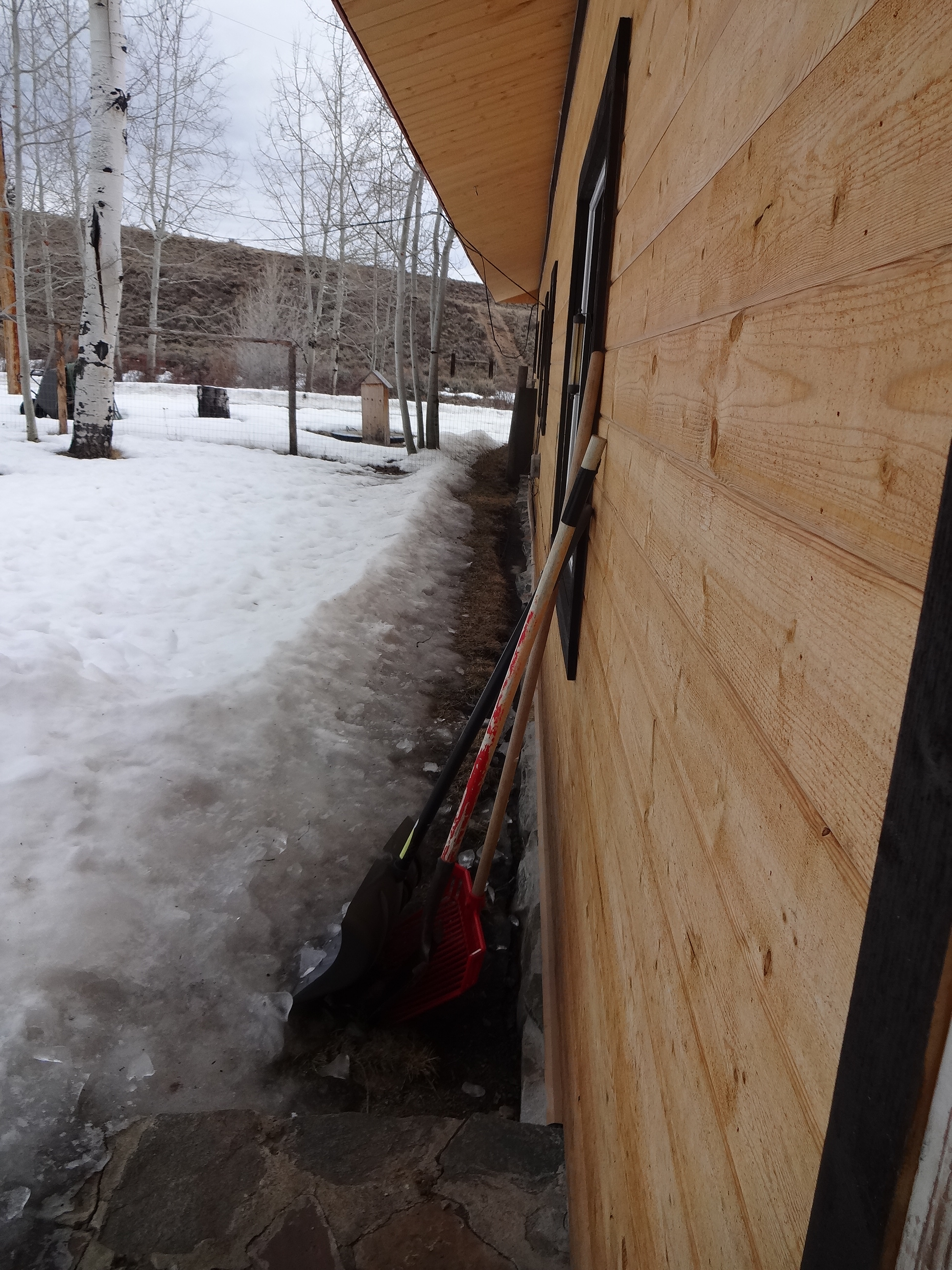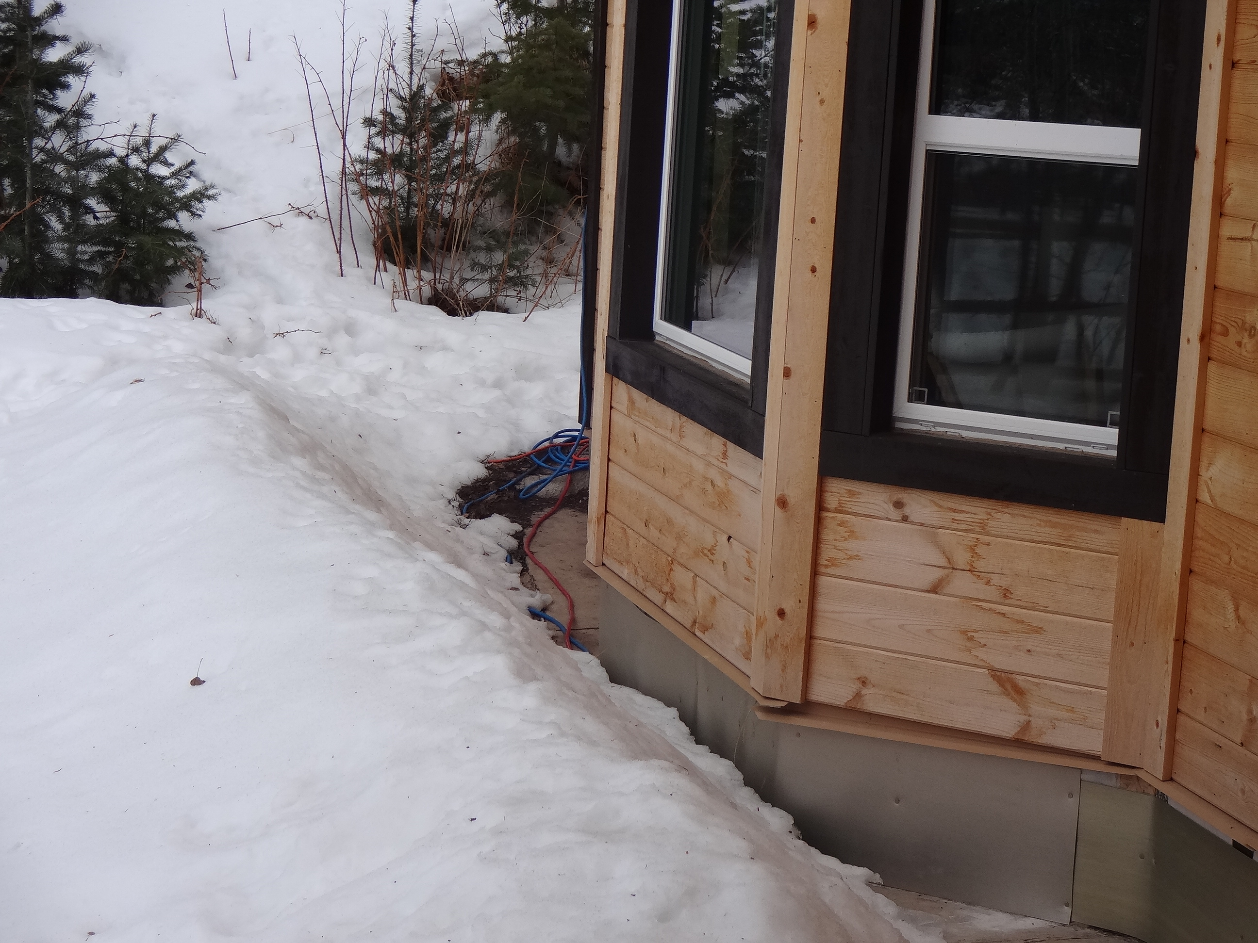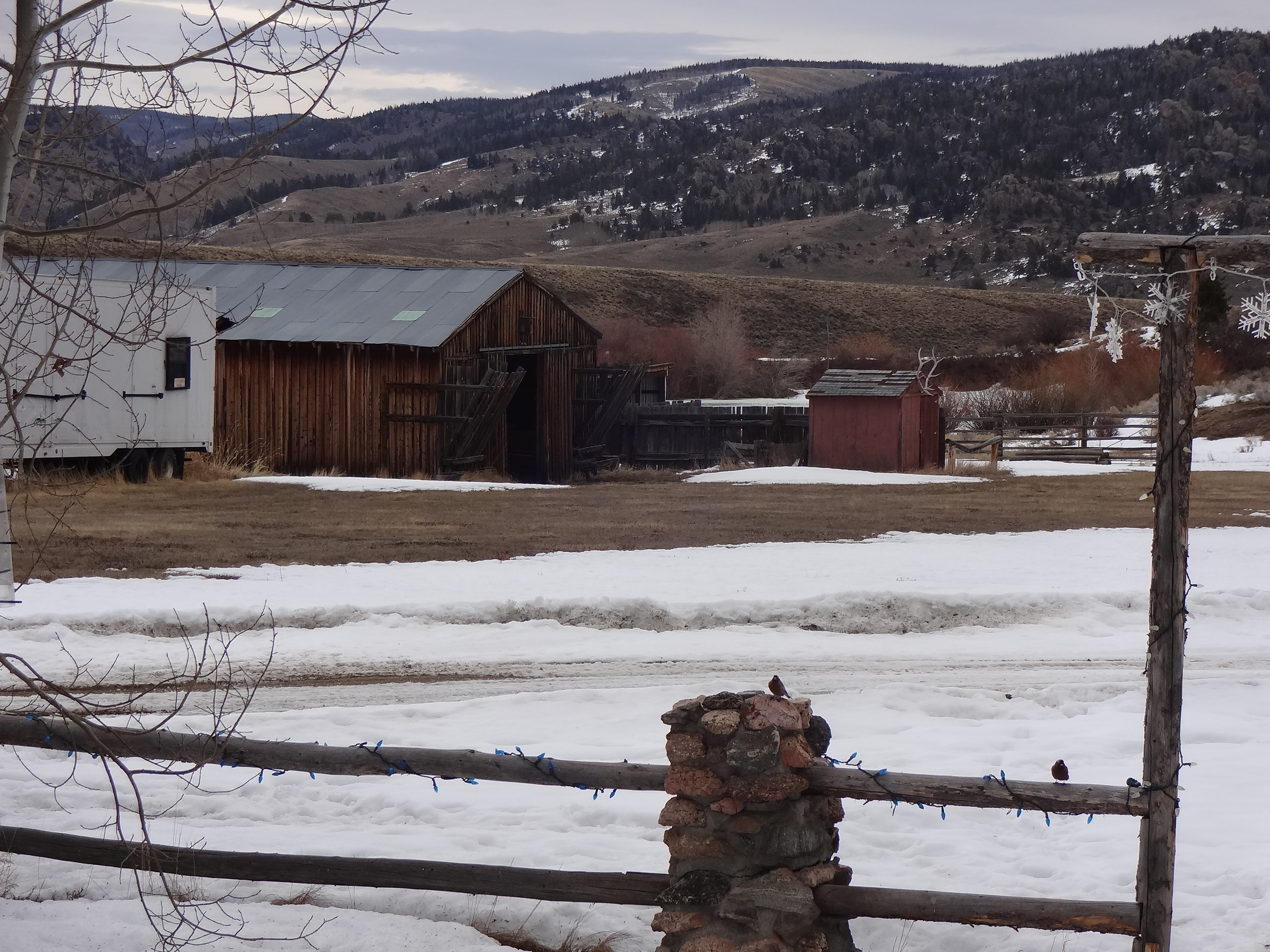 See the blue and red electric cords? Those are for the Christmas lights. Those are usually buried so deep you can’t see ANY trace of them until about April. I’m not kidding. See all that grass exposed in front of the barn? Not supposed to see any of that til April. It’s bad here. Really bad.