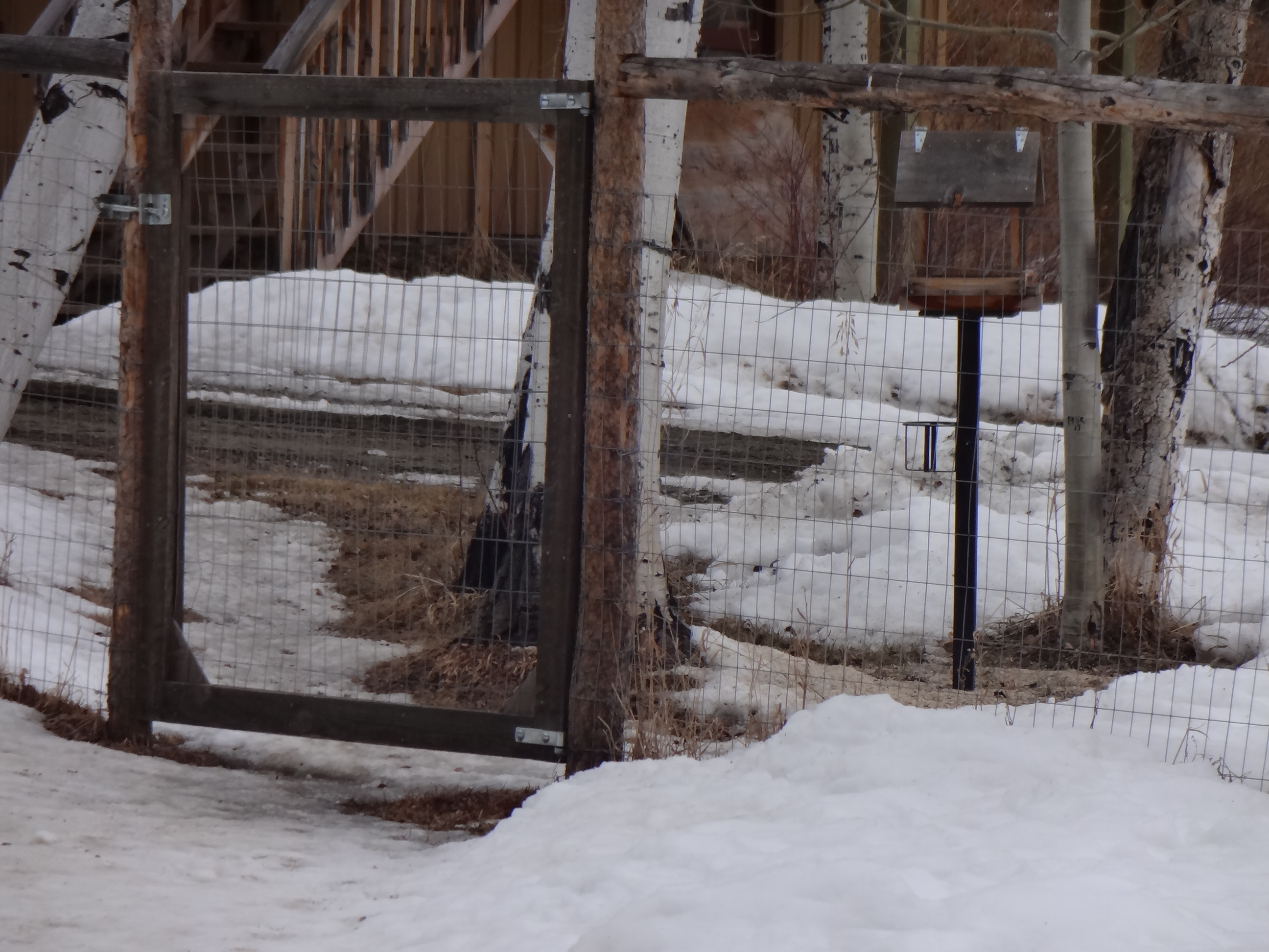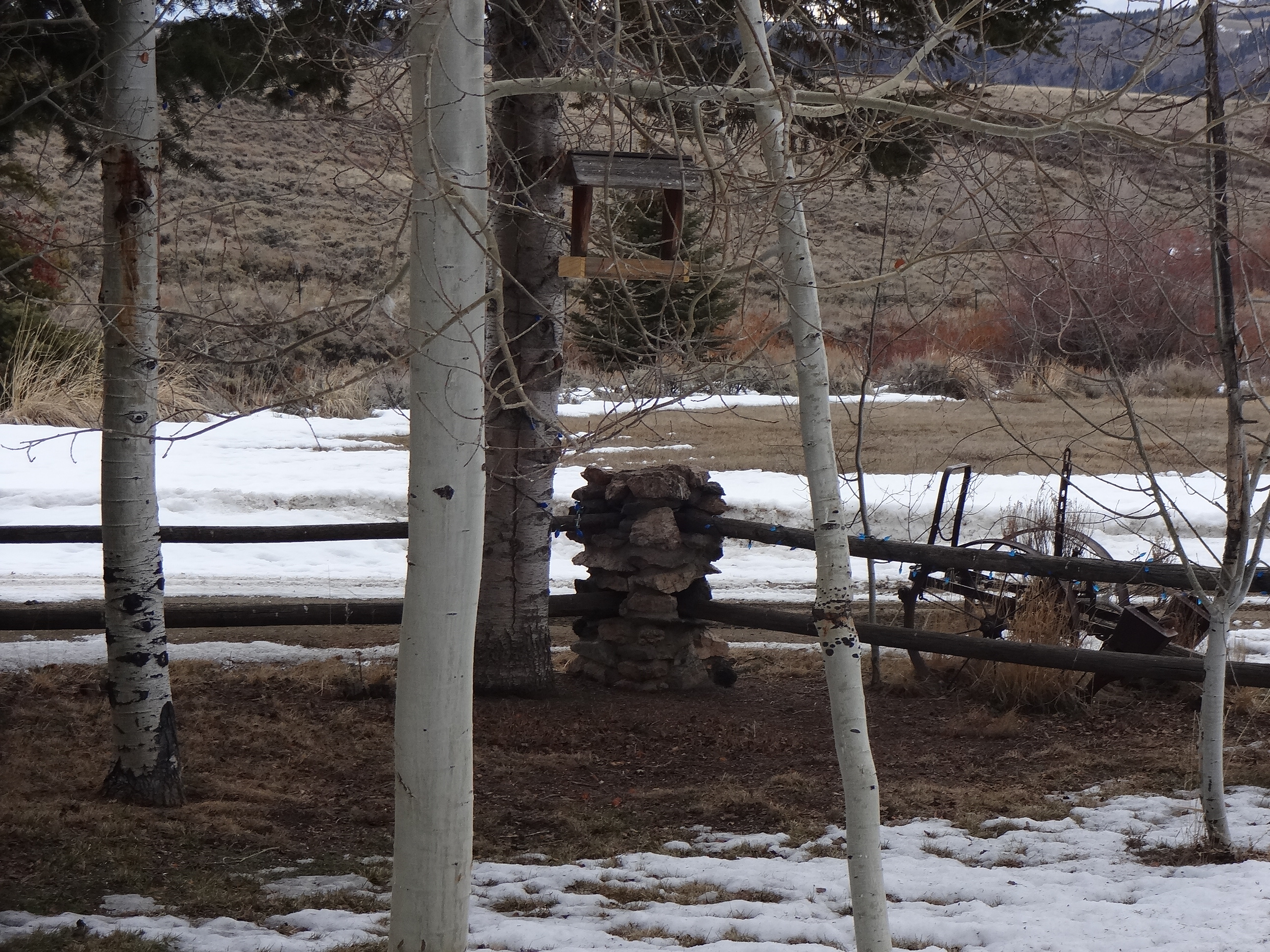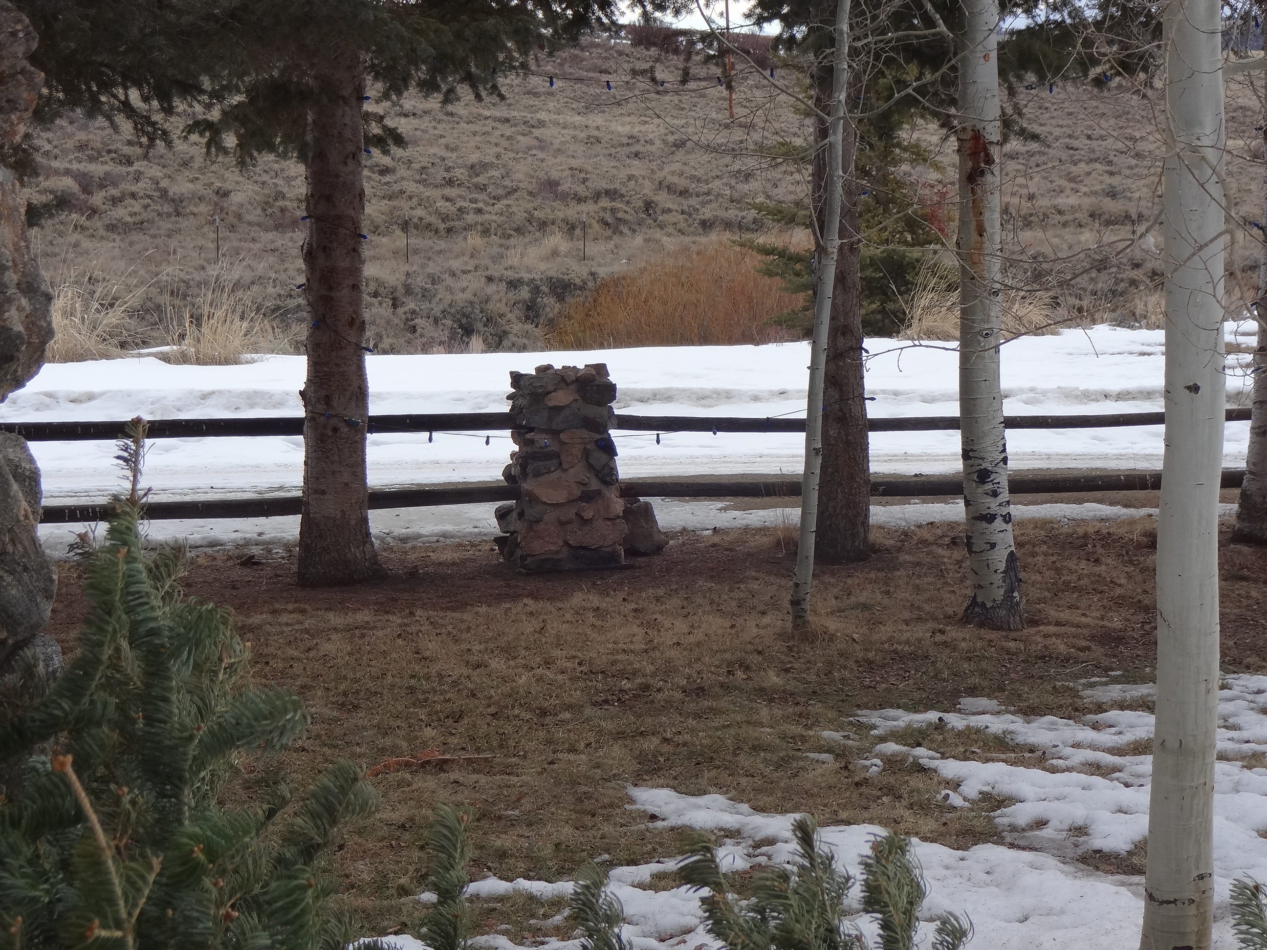 And, in case you think I’m complaining for no reason about the lack of snow, I’m sending pictures I took just this morning of the view from the porch. NOT pretty I tell you. Not pretty. We should have about 4 feet of snow on the ground at this point. It should NOT look like April out there. Too depressing for words. This is akin to looking at my used-to-be-gorgeous flower garden after the myriad of rodents had their way.