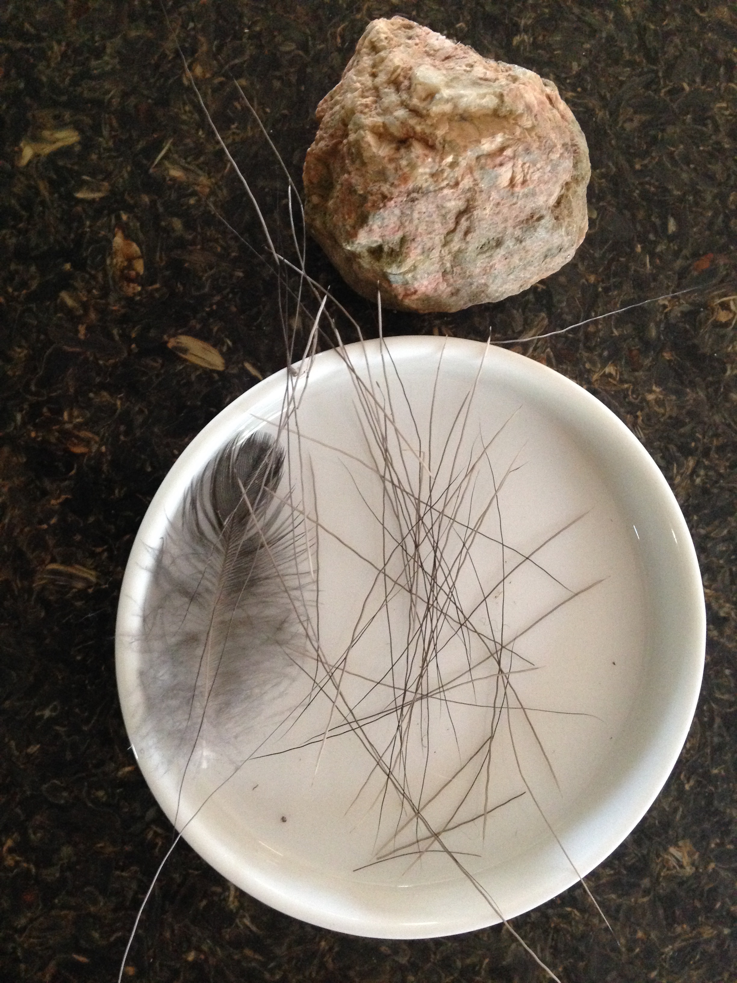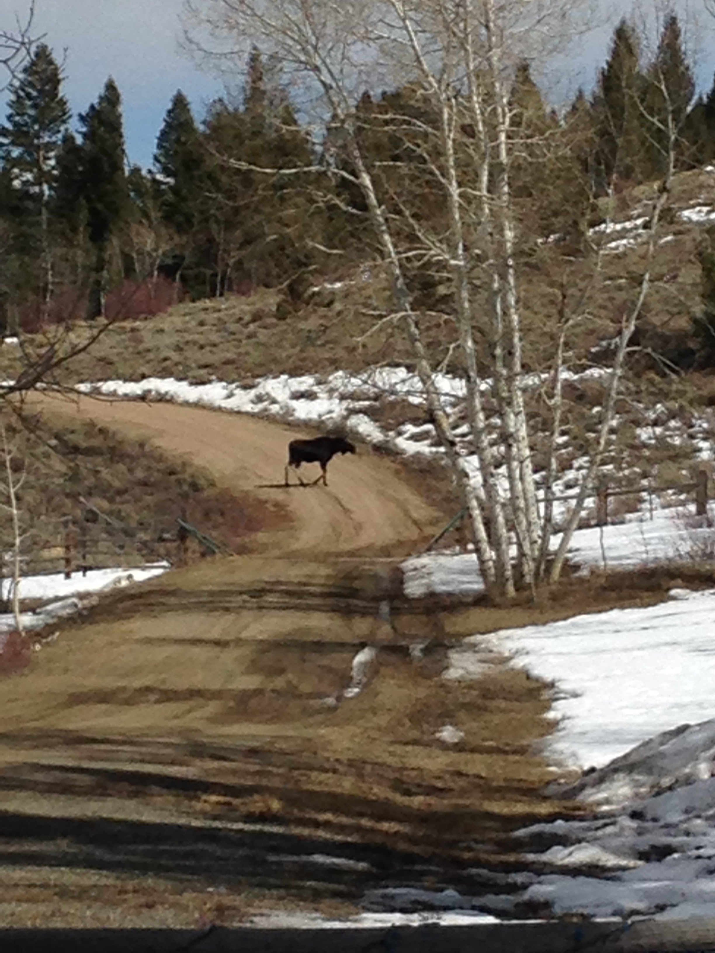 Yesterday’s “spring walk” netted us some real treasures! Some I was able to capture, others you’ll have to take my word for. Like the ginormous moose tracks up behind the house. HUGE. Holy moses they were big. At first I thought the man of the house had set off up the draw for lord knows what purpose. Then we started looking a bit closer and realized they were moose tracks! Melted out on top (thus the reason for looking as big as a Sasquatch footprint) but with the obvious toe marks of a very large moose. Very large. And then the deciding factor–the scat. We’ve become quite the scatologists here. And moose poop (for lack of a better word, though the eight year old has been insisting on “feces” for a couple of years now, but I digress)–moose scat is quite distinct. As we were walking on up the trail, breaking through what is left of the crusty snow, the scientist-in-training spotted several random pieces of hair scattered along the path. “Moose hair!” she exclaimed. I was, I’ll admit, slightly skeptical, until I squatted down and to my utter disbelief realized she was correct. As the very large beast ambled down the draw, he (we’re assuming due to the size) was losing some of his winter coat. The pieces of hair are gorgeous, silver-tipped and very thick.