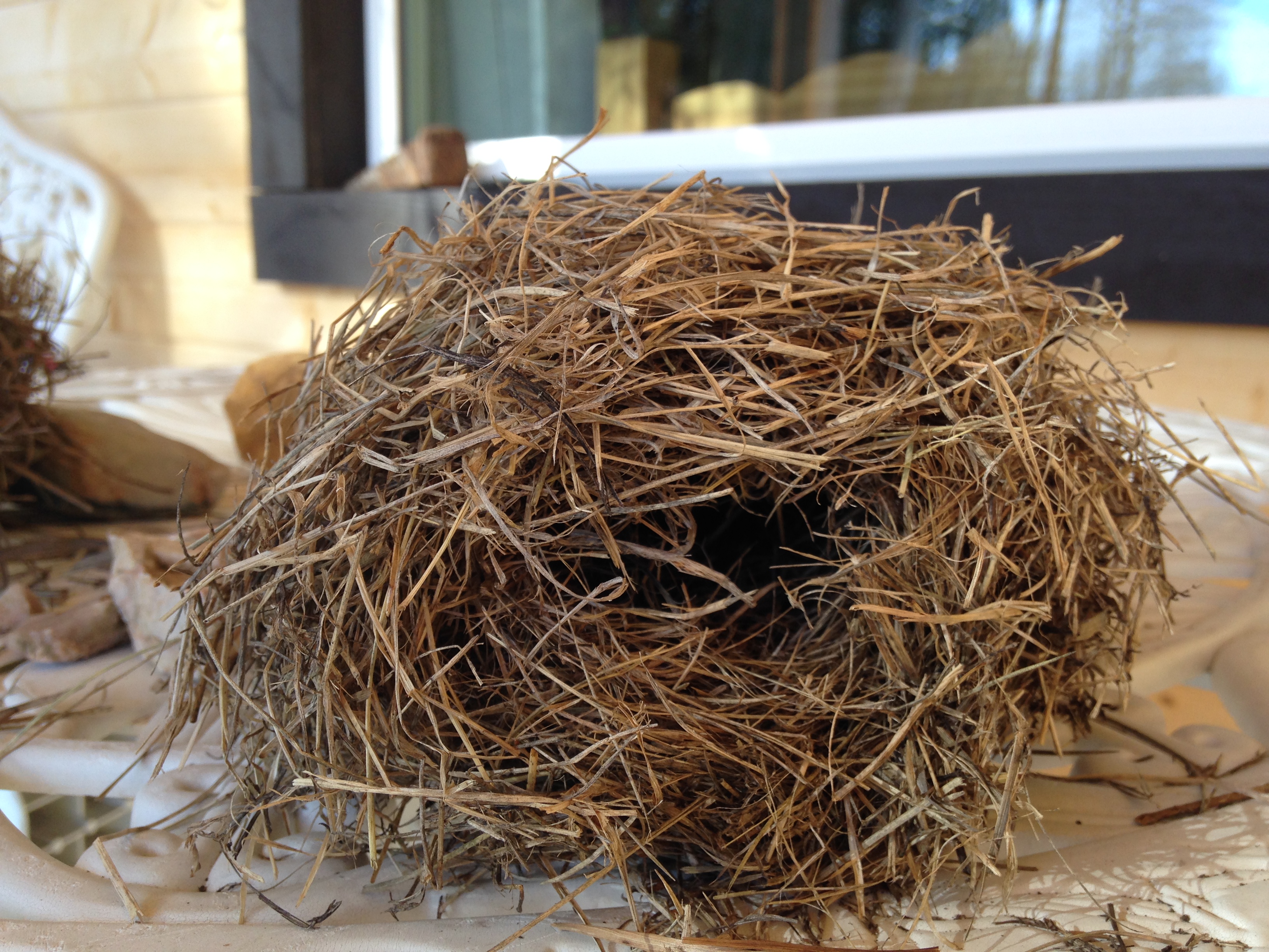 One of the coolest things, sort of if I don’t think of the ramifications, was our find of several of these nest-type formations. The snow has melted out in the “pasture” in front of the house and revealed these perfectly shaped spherical piles of cut grass. The first one was frozen to the ground and as I tried to pick it up, the top half came off in my hands, revealing a hollowed out place inside. The next two we picked up (of course) and after that, I said I thought we’d collected enough. No evidence of what critter made its home there (no scat, no hair or feathers), just the hollowed out center. Kind of cool, unless I cogitate long enough on the possibility of them being chipmunk or mouse homes. Major eye roll. But this is where we live. On the side of a mountain, in the middle of nowhere, replete with myriad numbers of rodent-like creatures who would like to be inside my warm and cozy home. Fact of life. The sooner I accept it the sooner I’ll find some peace and calm.
