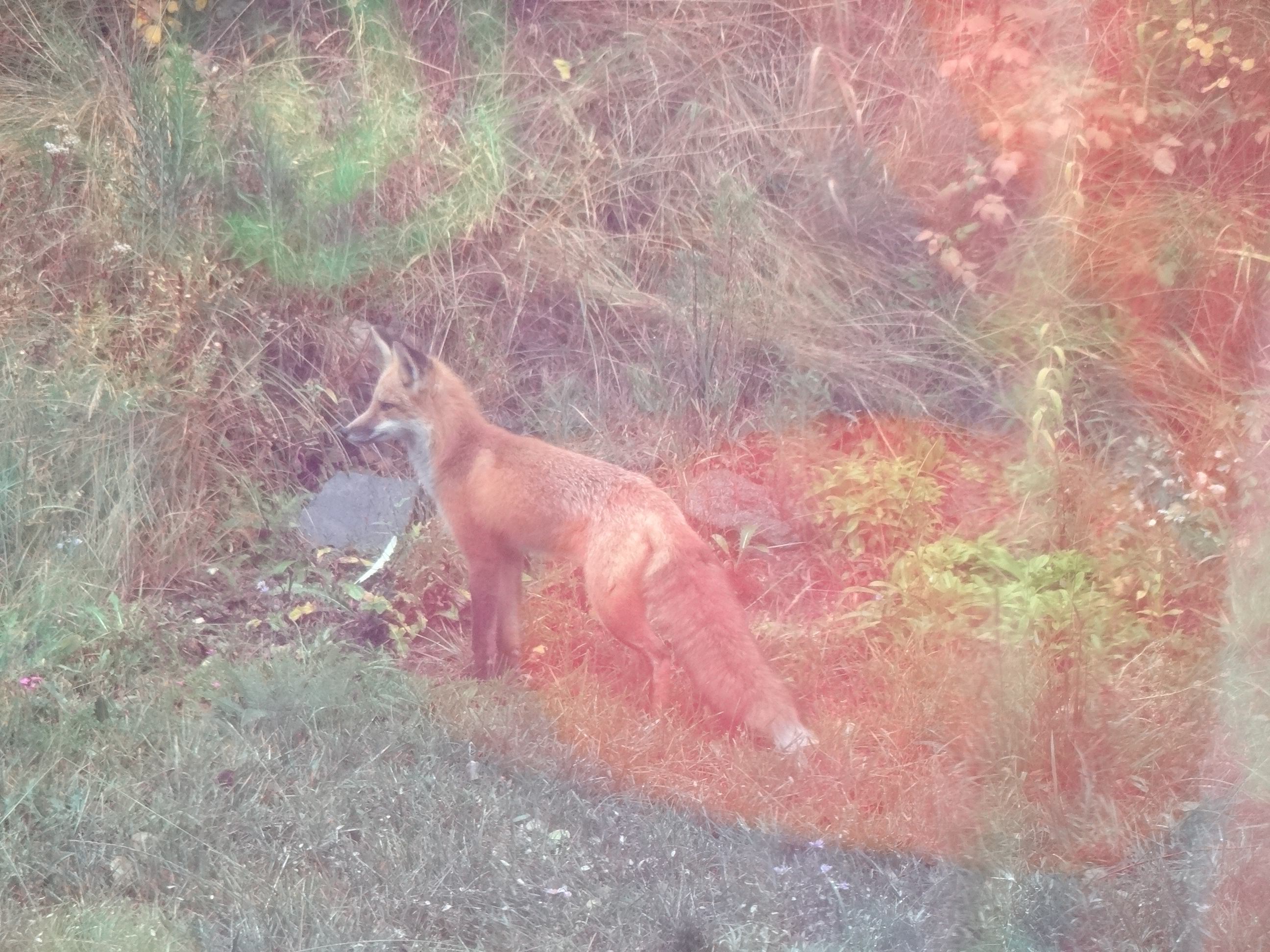 This was taken through the bedroom window (thus the weird lighting). I didn’t want to step onto the front porch and scare him off. Once again, I so wish I could stop doing this, I am attributing gender. I simply do not know. We’ll go with Brother Fox here, just because. Literary license and such.