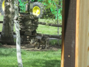 Two days ago, Buck started barking in the back yard. It sounded like his “I’m lonely out here and I want a treat” bark, so I pitched Aengus out to keep him company. A few seconds later I happened to look out the front window and to what should my wondering eyes appear, but…